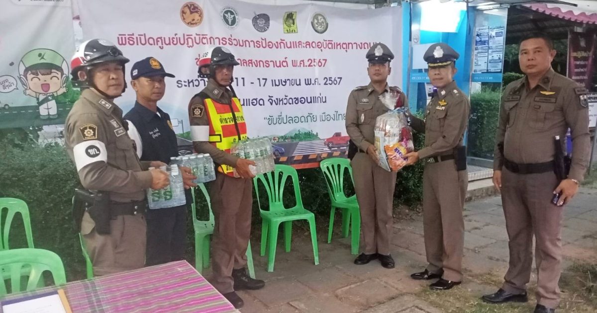 11 เม.ย.2567 เวลา 18.00 น. พล.ต.ต.อนุวัตร สุวรรณภูมิ ผบก.ภ.จว.ขอนแก่น มอบหมายให้ พ.ต.อ.คะเชนทร์ ยืนยง รอง ผบก.ภ.จว.ขอนแก่น ออกตรวจเยี่ยม จุดตรวจเทศกาลสงกรานต์ 2567 จุดบริการ สภ.ท่าพระ และ สภ.บ้านแฮด พบ กำลังเจ้าหน้าที่ตำรวจสภ.ท่าพระ , สภ.บ้านแฮด และเจ้าหน้าที่ อปพร. อยู่ประจำจุดตรวจ ได้รายงานเหตุการณ์ การจราจรมีความคล่องตัว จึงได้กำชับการปฏิบัติและข้อสั่งการ ดังนี้