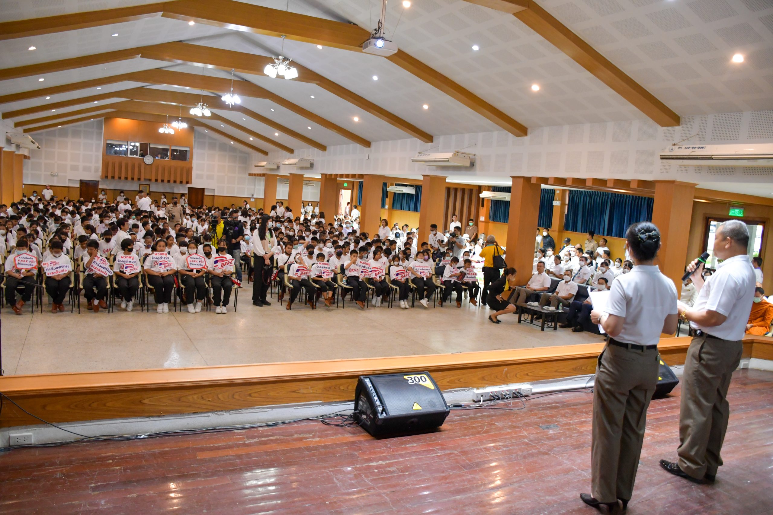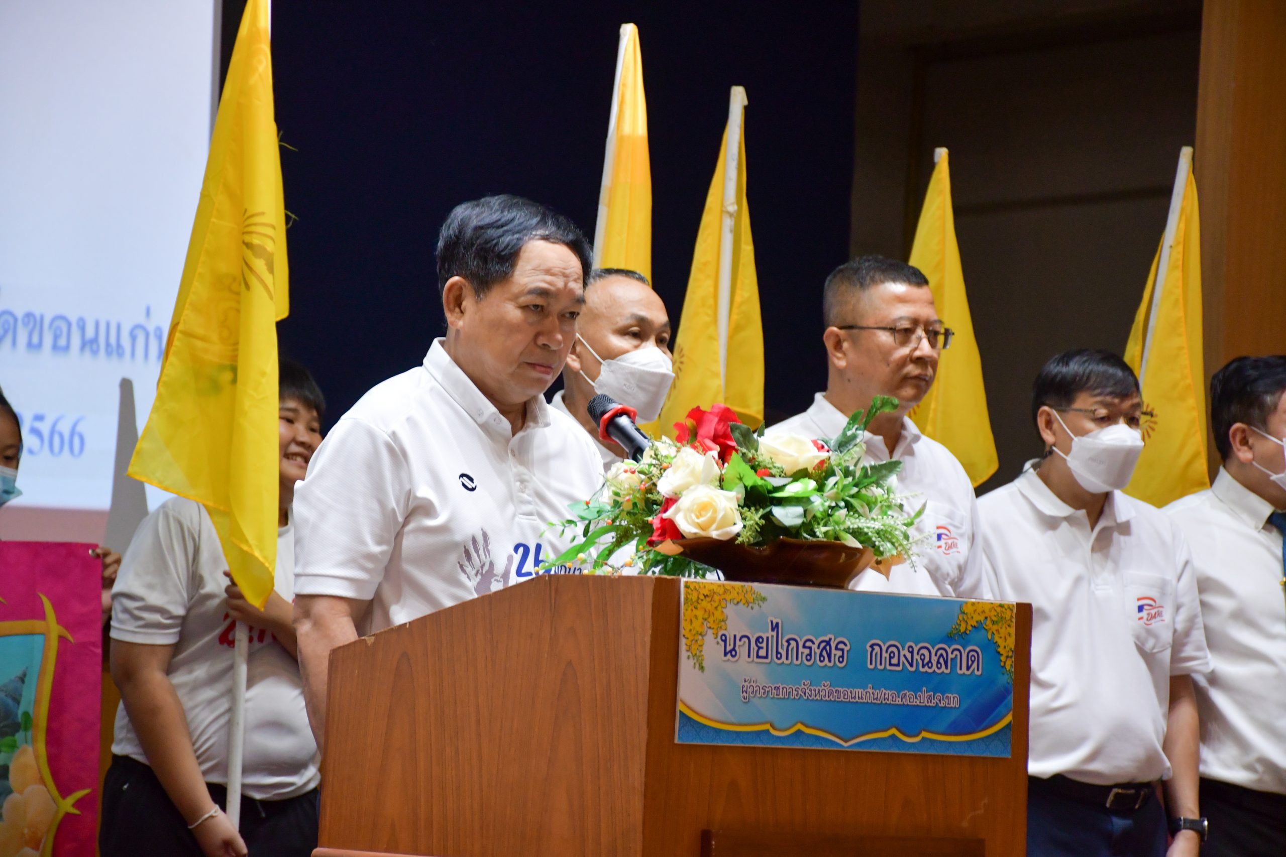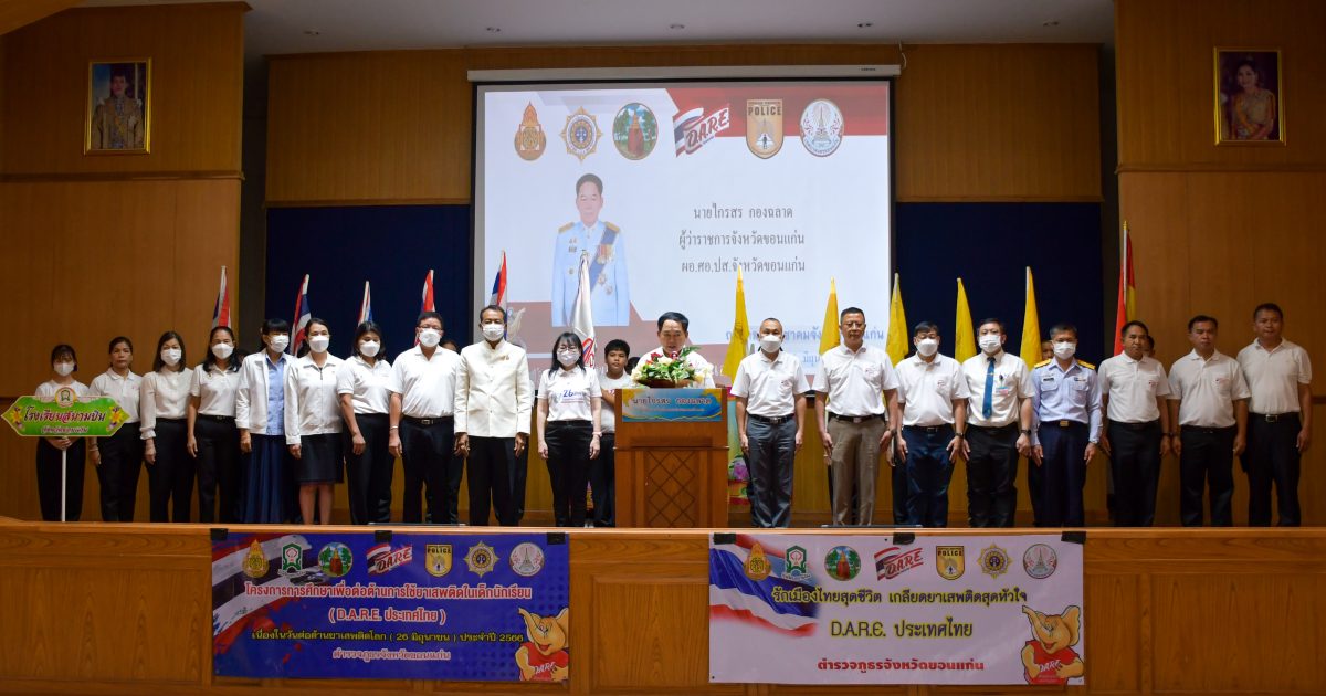 วันที่ 26 มิ.ย.2566 เวลา 09.30 น. พล.ต.ต.นพเก้า โสมนัส ผบก.ภ.จว.ขอนแก่น พร้อมด้วย พ.ต.อ.ธีระวัฒน์ นุมานิต รอง ผบก.ภ.จว.ขอนแก่น, พ.ต.อ.ปรีชา เก่งสาริกิจ ผกก.สภ.เมืองขอนแก่น และ คณะวิทยากรครูตำรวจ D.A.R.E ในสังกัด ภ.จว.ขอนแก่น ร่วมพิธีเปิดโครงการรณรงค์ต่อต้านยาเสพติดเครือข่ายนักเรียน D.A.R.E. ประจำปีงบประมาณ พ.ศ.2566 ตำรวจภูธรจังหวัดขอนแก่น โดยได้จัดกิจกรรมเดินรณรงค์ต่อต้านยาเสพติดในเขตพื้นที่ อำเภอเมืองขอนแก่น และจัดกิจกรรมเสริมความรู้ต่อต้านยาเสพติด การป้องกันแก้ไข และเฝ้าระวังปัญหายาเสพติด โดยมีผู้เข้าร่วมกิจกรรม จำนวนทั้งสิ้น 800 คน โดยมี นายไกรสร กองฉลาด ผู้ว่าราชการจังหวัดขอนแก่น เป็นประธานในพิธี พร้อมด้วย ผู้แทนส่วนราชการ, คณะผู้บริหารสถานศึกษา และผู้เกี่ยวข้องทุกฝ่าย เข้าร่วมพิธีฯ ณ ห้องประชุมศาลาประชาคม จังหวัดขอนแก่น