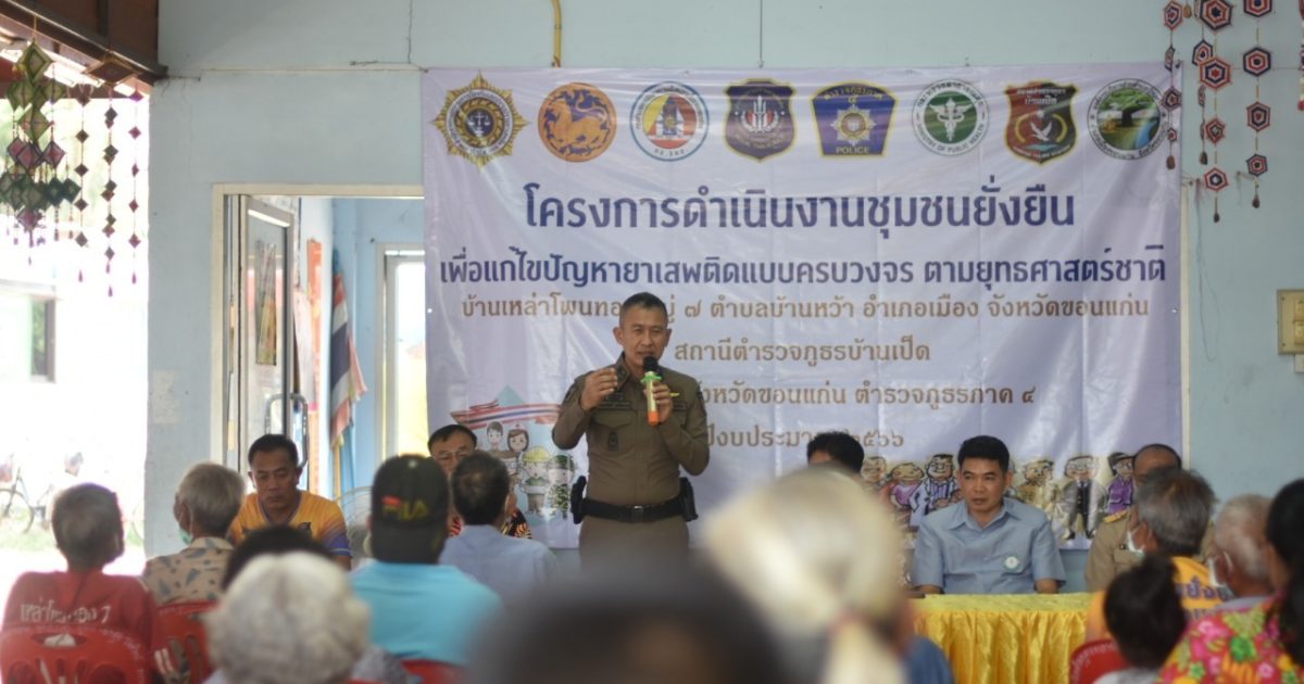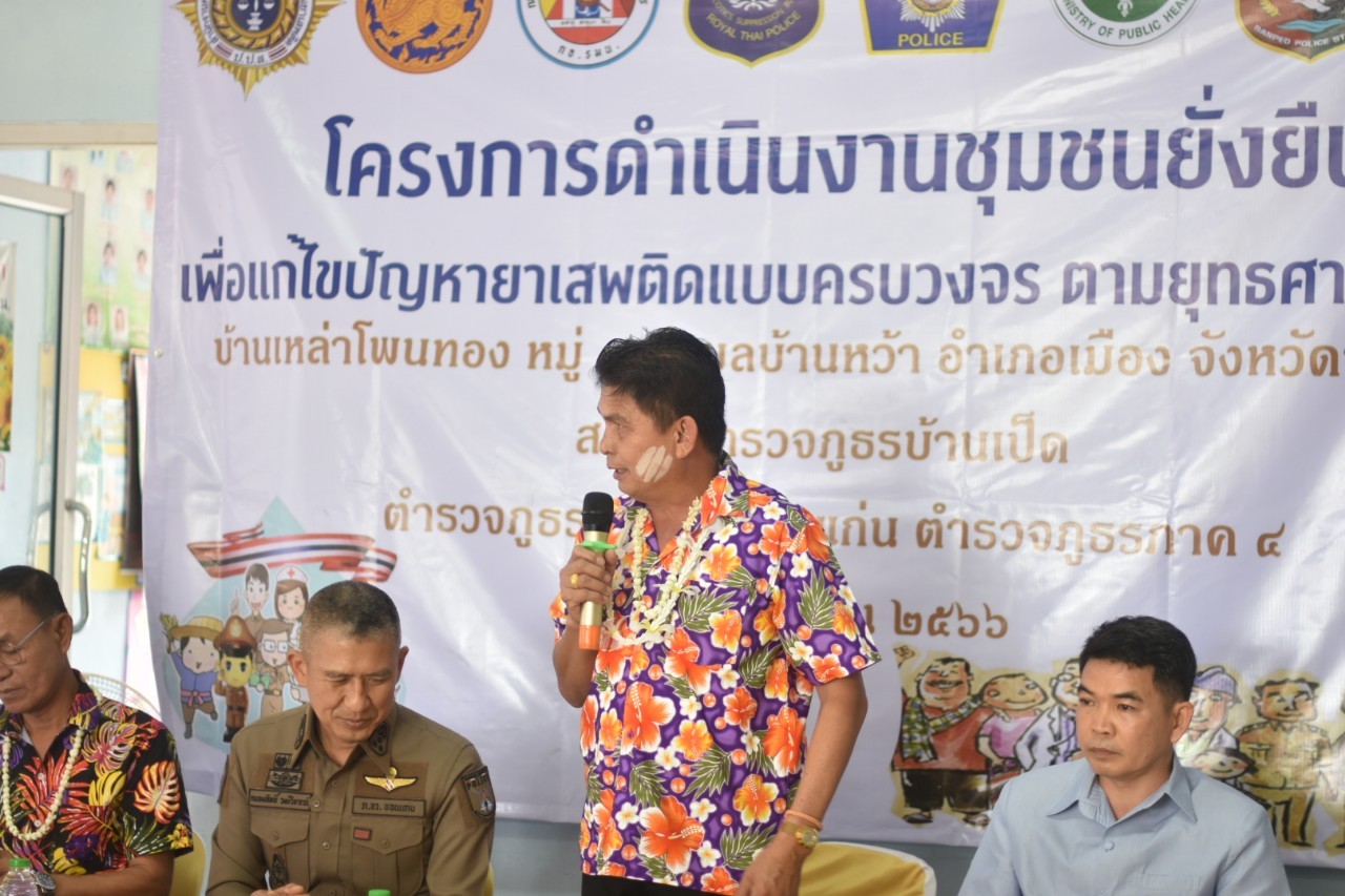 วันที่ 4 เม.ย.2566 เวลา 10.00 น. พ.ต.อ.ถนอมสิทธิ์ วงษ์วิจารณ์ รอง ผบก.ภ.จว.ขอนแก่น เป็นประธานเปิดงานโครงการชุมชนยั่งยืนแก้ไขปัญหายาเสพติดแบบครบวงจรตามยุทธศาสตร์ชาติ (สภ.บ้านเป็ด) ณ ศาลากลางบ้าน บ้านเหล่าโพนทอง ตำบลบ้านหว้า อำเภอเมือง จังหวัดขอนแก่น หัวหน้าส่วนราชการ โดยมี นายสมโภชน์ ไชยธรรม นายกองค์การบริหารส่วนตำบลบ้านหว้า ร่วมเปิดงาน